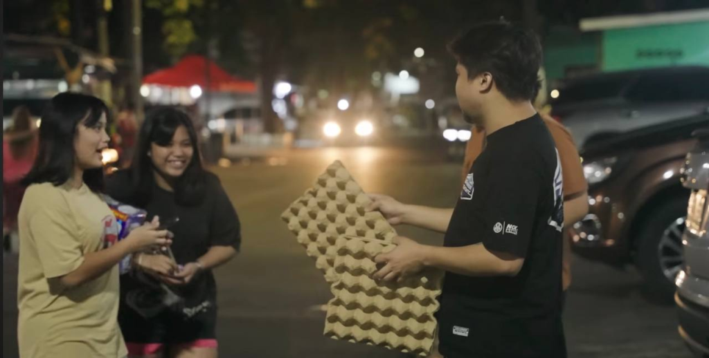 Si Waldo ay naglakad-lakad at lumibot upang ibenta ang itlog sa halagang ₱5 kada tray — buy 1 take 1 pa! Todo-benta siya habang sumisigaw ng mga nakakatuwang linya sa mga dumadaan.