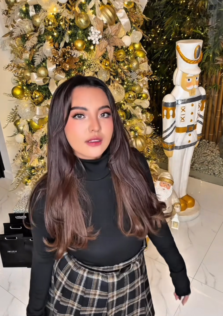Take it from Viy, a fluffy turtleneck long sleeve, plaid skirt, and a pair of black boots will definitely complete your festive look.