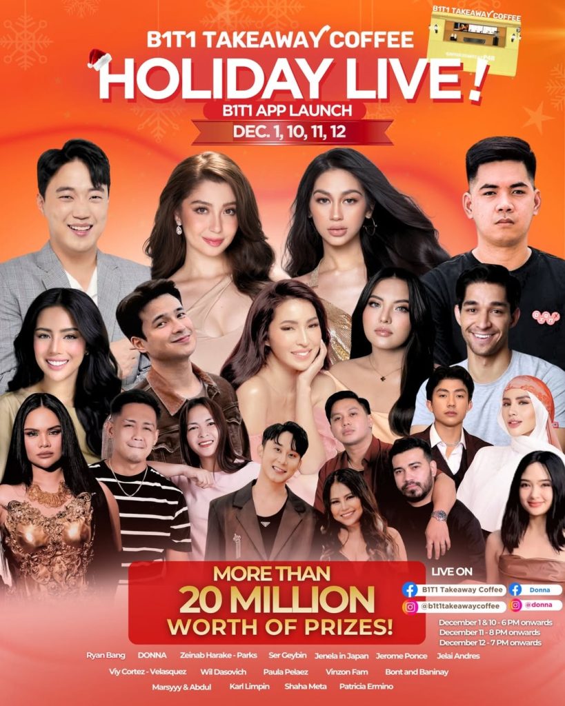 This December 1, 10, 11, and 12, B1T1 Takeaway Coffee will go live on their official Facebook and Instagram pages. Viewers can also tune in to Donnalyn’s official Facebook and Instagram accounts for the livestream.