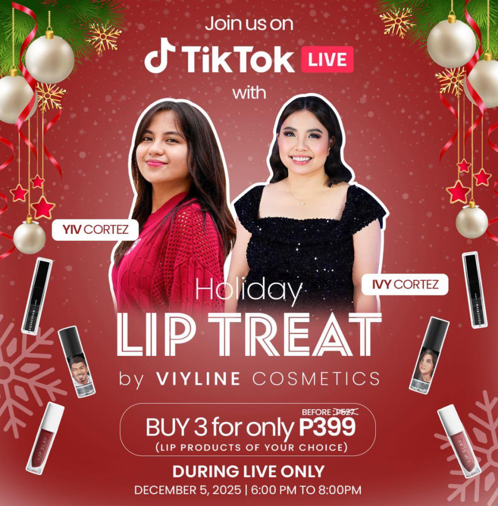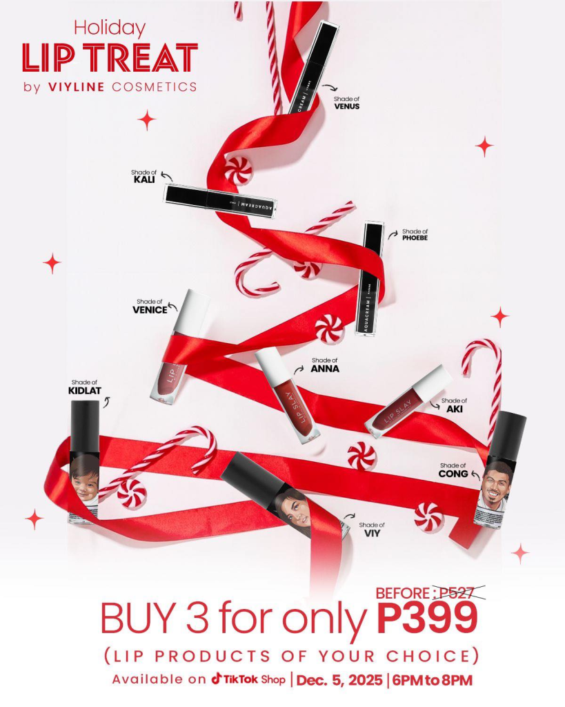 This December 5, crowd-favorite Viyline Cosmetics products like Lip Slay, Aqua Cream, and TP Tints are now available as a set for only P399, exclusively on TikTok Shop.