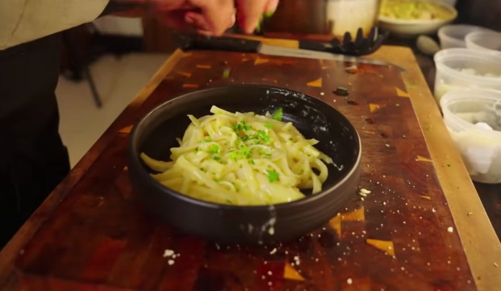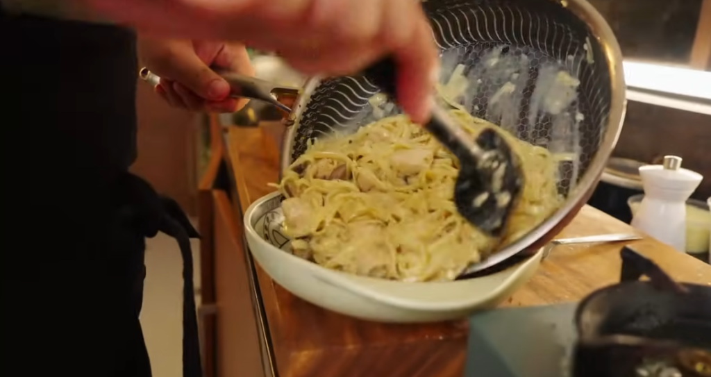 Sunod naman niyang inihanda ay ang Italian-style Alfredo. Gumamit si Dudut ng butter, pasta broth, at Parmigiano Reggiano, na nagbigay ng rich at creamy na lasa. Walang manok o mushroom, ngunit classic at puro lasa ng pasta at cheese ang bumabalot sa bawat kagat.