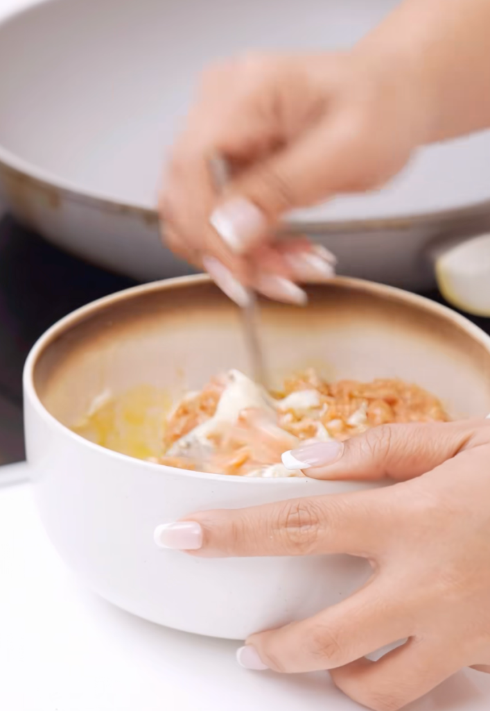 Sunod naman niyang nilagyan ng mayonnaise ang tuna at kanya na rin itong hinaluan ng mga pampalasa.