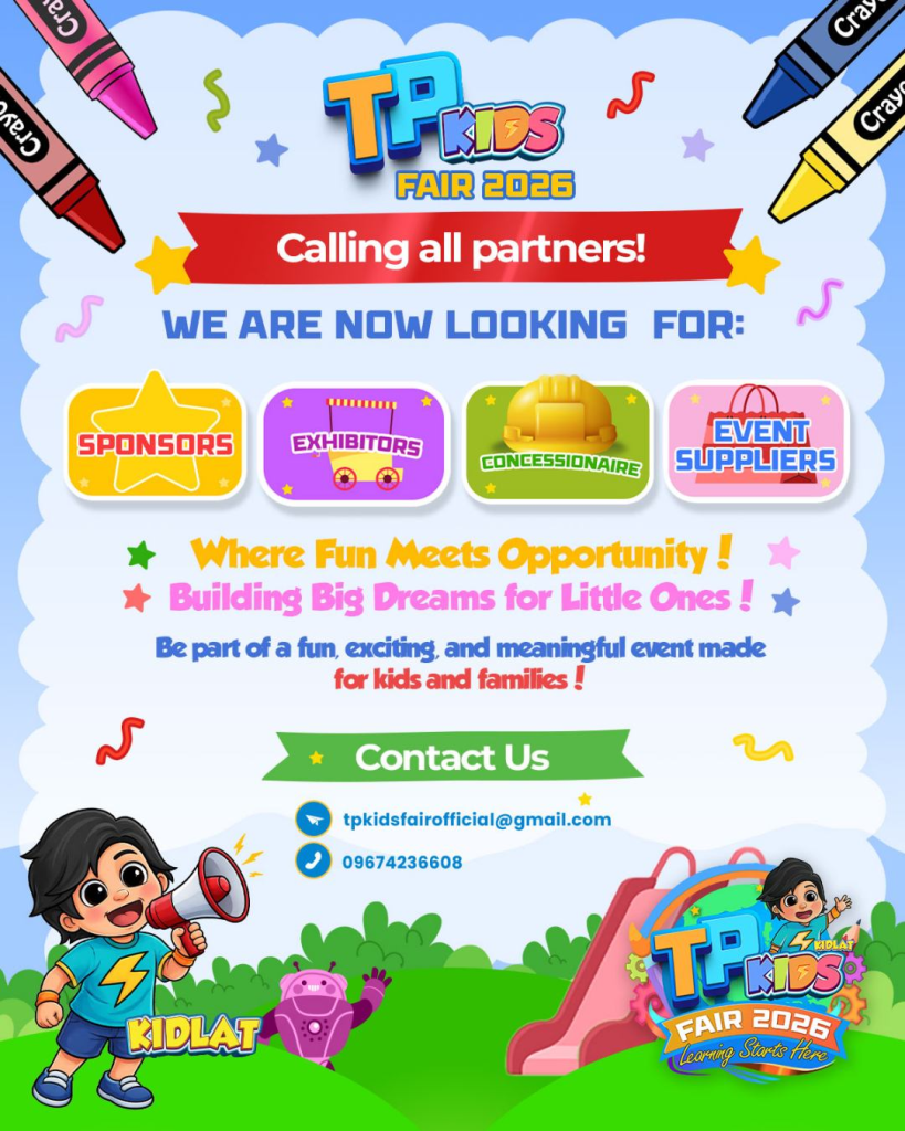 TP Kids Fair is now officially looking for sponsors, exhibitors, concessionaires, and event suppliers who can help make this event both meaningful and fun for everyone.