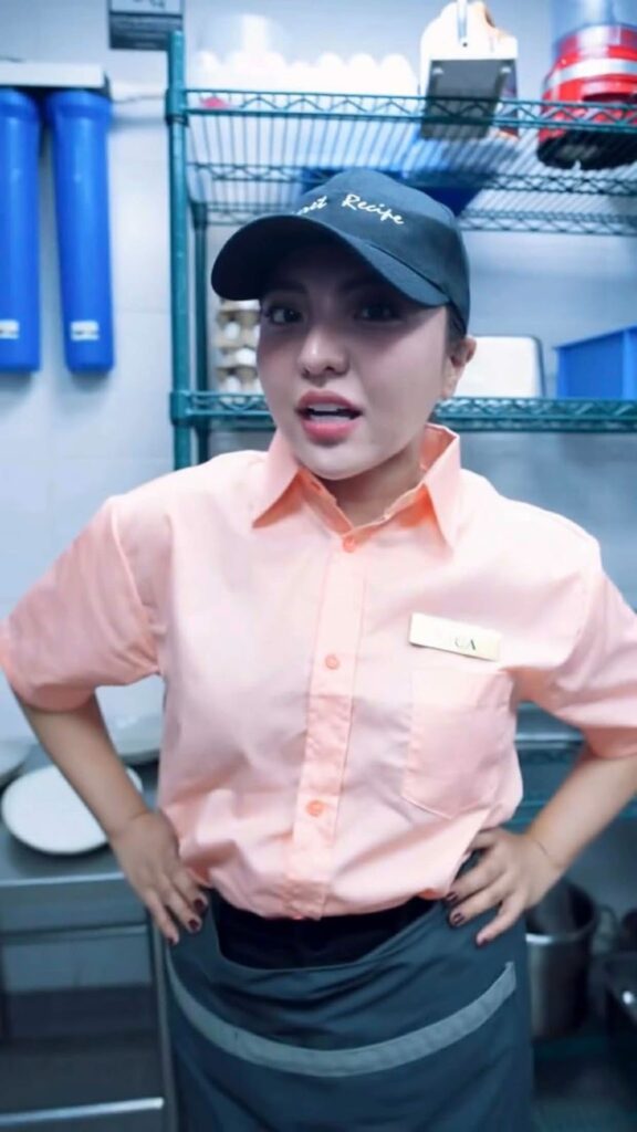 Sa gitna ng kanilang kwentuhan, isa-isang nagsilbi si Viy sa mesa at sinadyang gumawa ng maliliit na aberya bilang bahagi ng prank. Ilan sa ginawa niya ay ang sobrang paglalagay ng garnish, pag-aalok ng maling kagamitan, at bahagyang pagsagi ng tray.