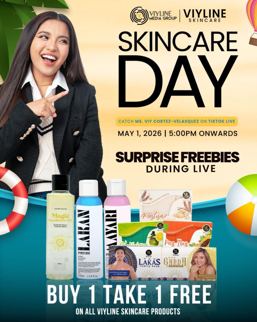 Head over to Ms. Viy Cortez-Velasquez’s TikTok account on May 1, 2026, from 5 PM onwards. Ready your carts, and let’s have some fun during Viyline Skincare Day!